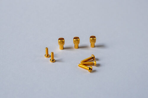 Gold Plated Screw Collection comprising; 3 x Plate Screws, 3 x M3 x 12mm dome headed allen key screws, 2 x M2.5 x 8mm flat screws